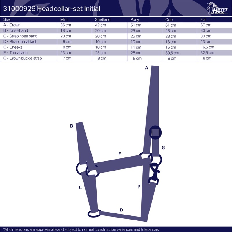 Nikeldatud metalldetailidega lihtsad päitsed. Päitset saab kuklast liugpandla abil reguleerida. Jalutusnööri pikkus on 180 cm.
